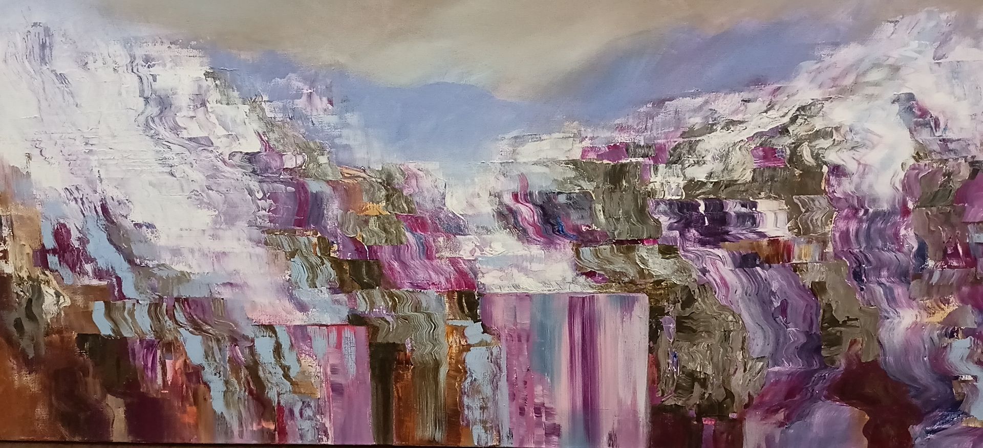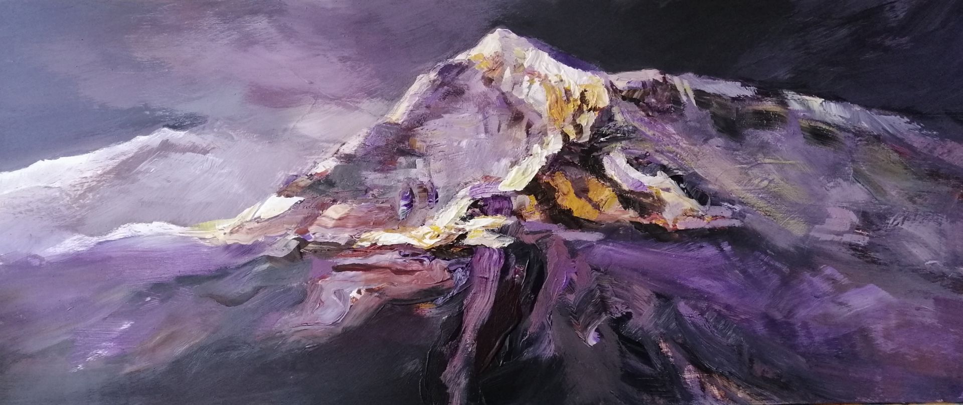 Let your eyes wander to the awe-inspiring mountain landscapes that dominate the canvas, capturing the grandeur and majesty of nature's wonders. Every stroke and shade is infused with the artist's deep reverence for the earth's magnificent peaks, inviting you to embark on a philosophical contemplation of the beauty surrounding us. As you immerse yourself in these panoramic vistas, you'll find yourself swept away by the sheer power and grace of nature, reminding you of your place within the larger tapestry of existence.